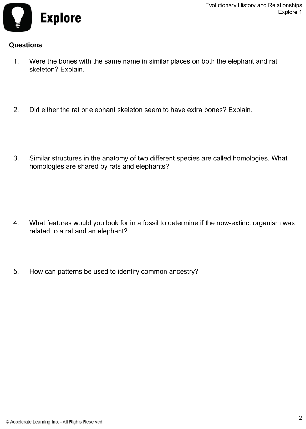 Did either the rat or elephant skeleton seem to have extra bones? Explain.