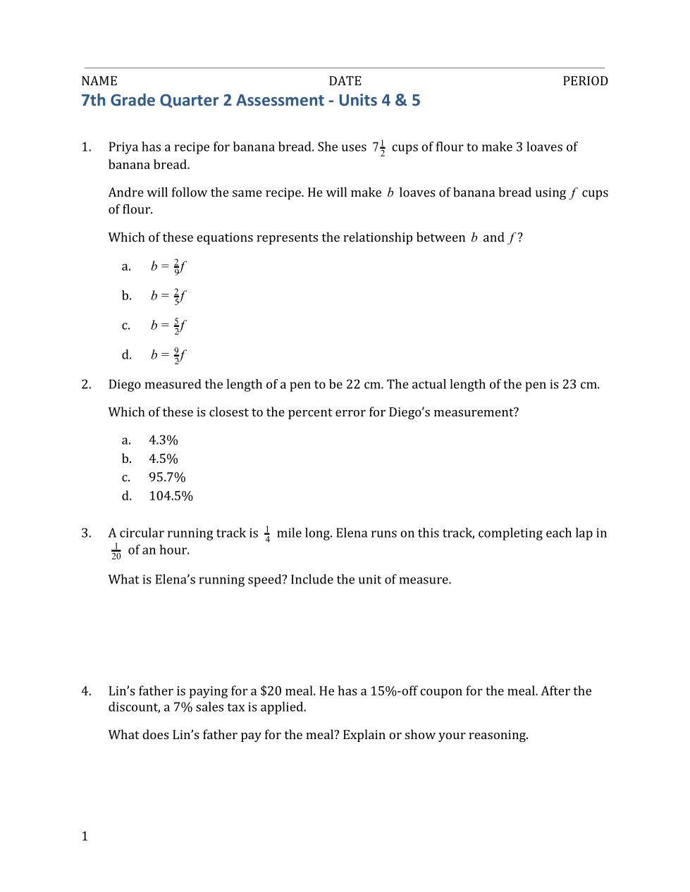 7th Grade Quarter 2 Assessment - Units 4&5