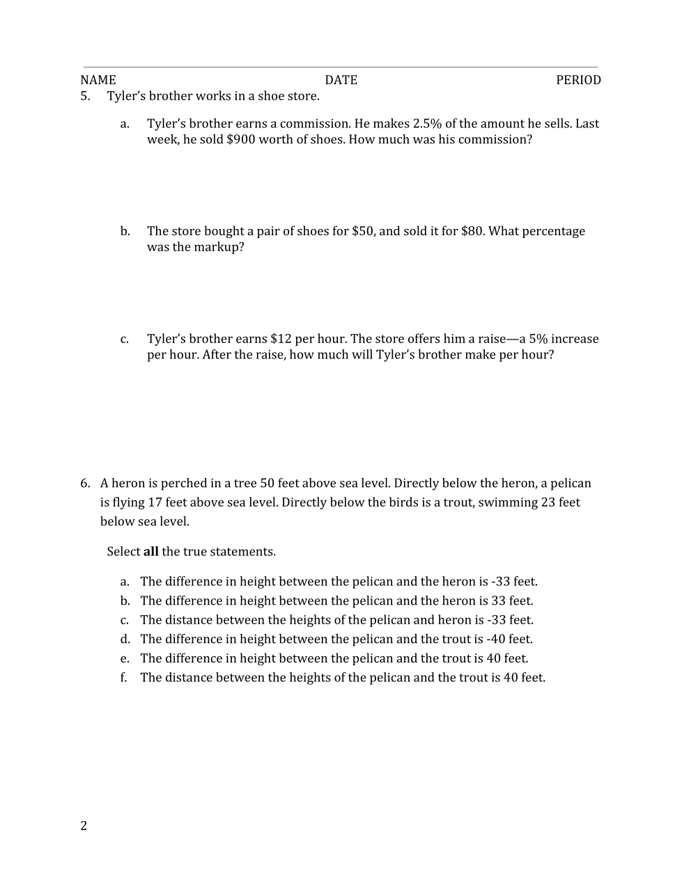 Tyler’s brother works in a shoe store.a. Tyler’s brother earns a commission. He makes 2.5% of the amount he sells. Lastweek, he sold $900 worth of shoes. How much was his commission?
