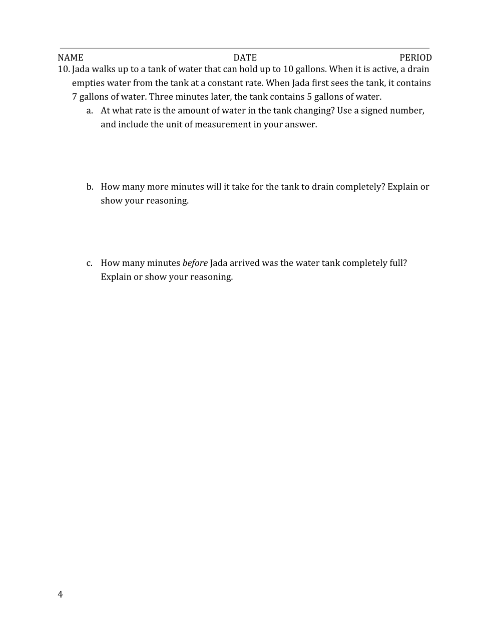 empties water from the tank at a constant rate. When Jada first sees the tank, it contains