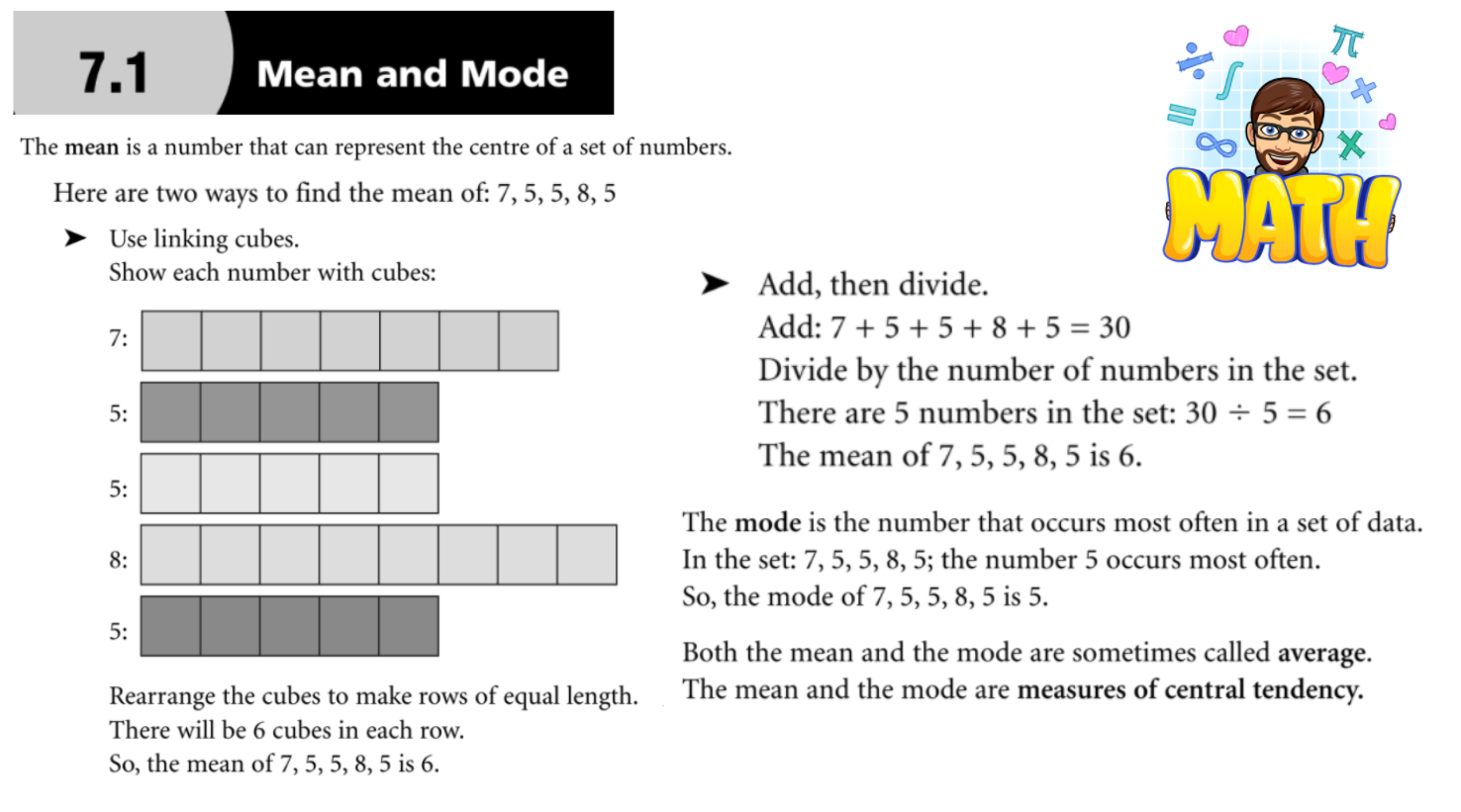 Using the square draw tool, draw cubes to find the mean of each data set.