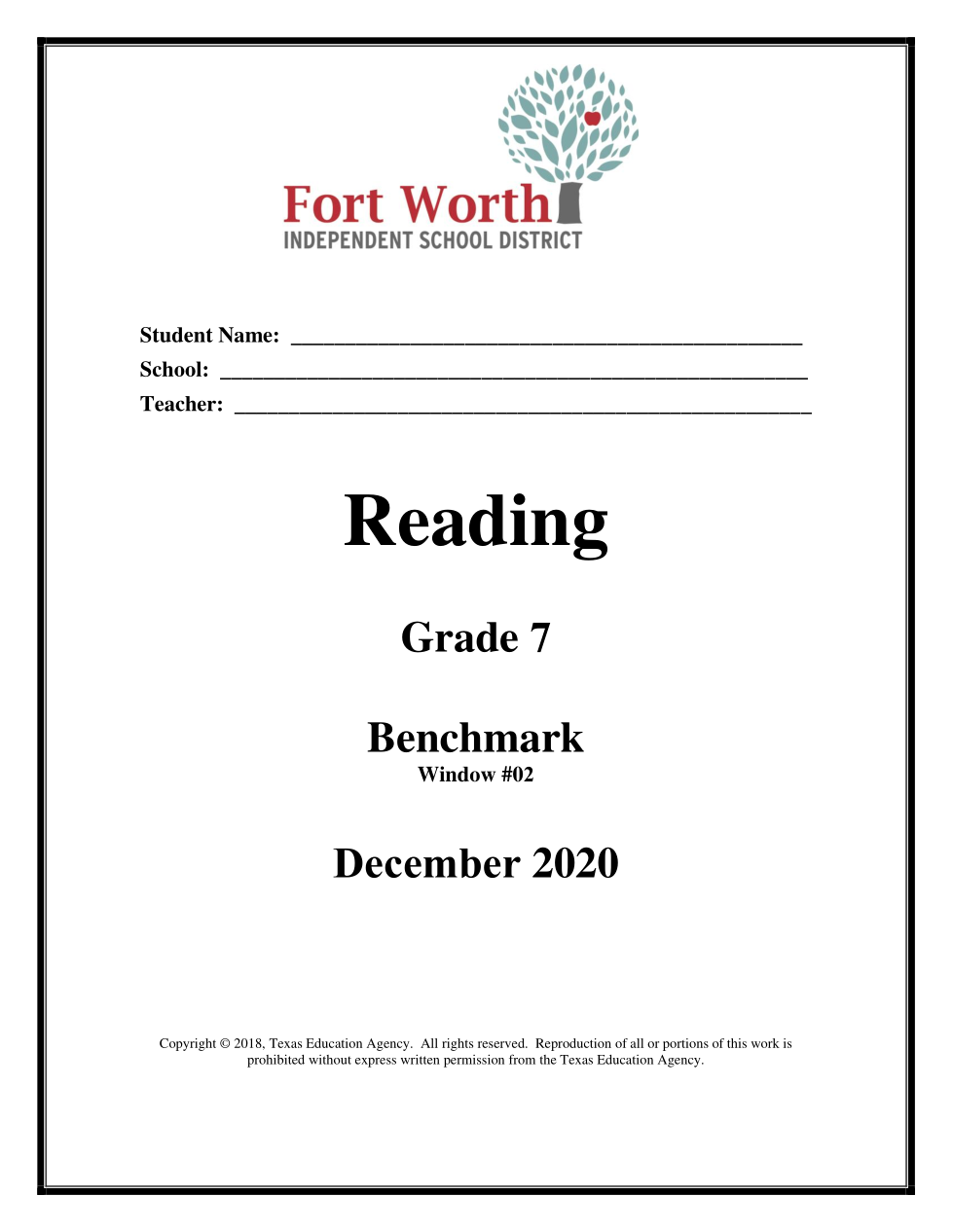 rms.056 Reading Grade 7 Benchmark Window #02 December 2020