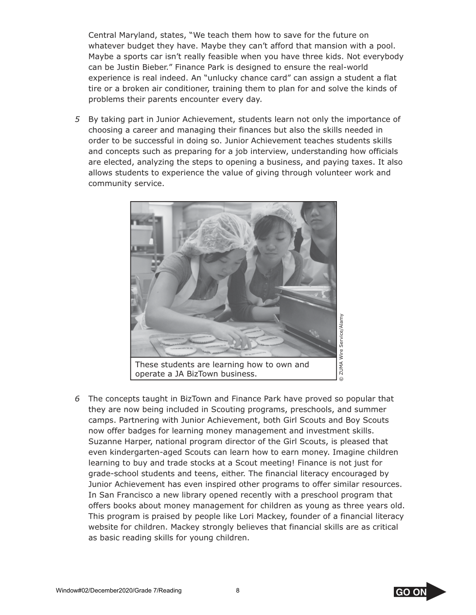 How does paragraph 5 help inform the reader about Junior Achievement?