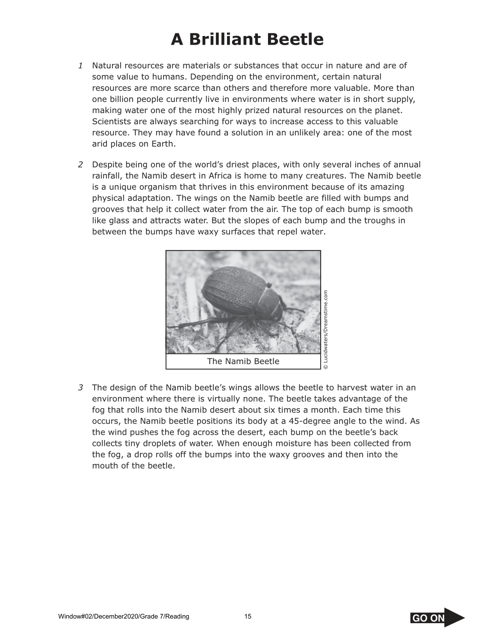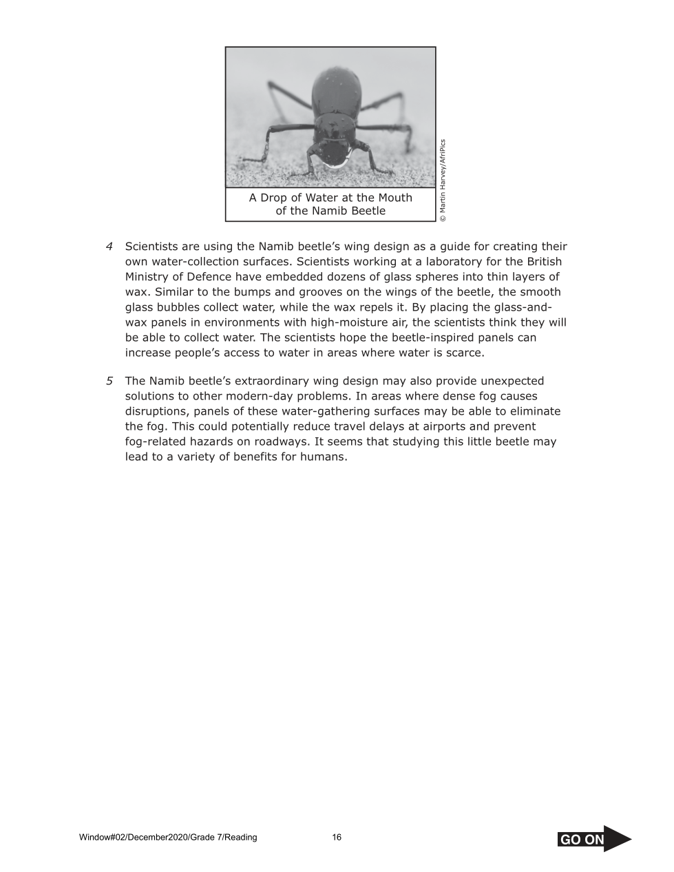The author focuses on a unique feature of the Namib beetle in order to highlight how the beetle —
