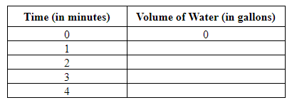 An empty 120-gallon pool is being filled with water from a hose. The water comes in at a constant rate of 4 gallons per minute. The volume of water in the pool is a function of time.