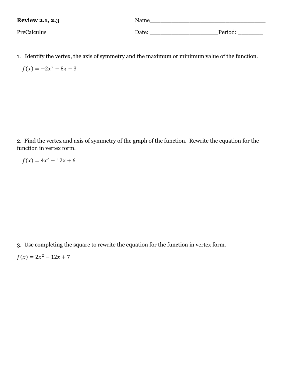 What is the axis of symmetry for f(x)? *Note: Your answer must be written as a linear equation.