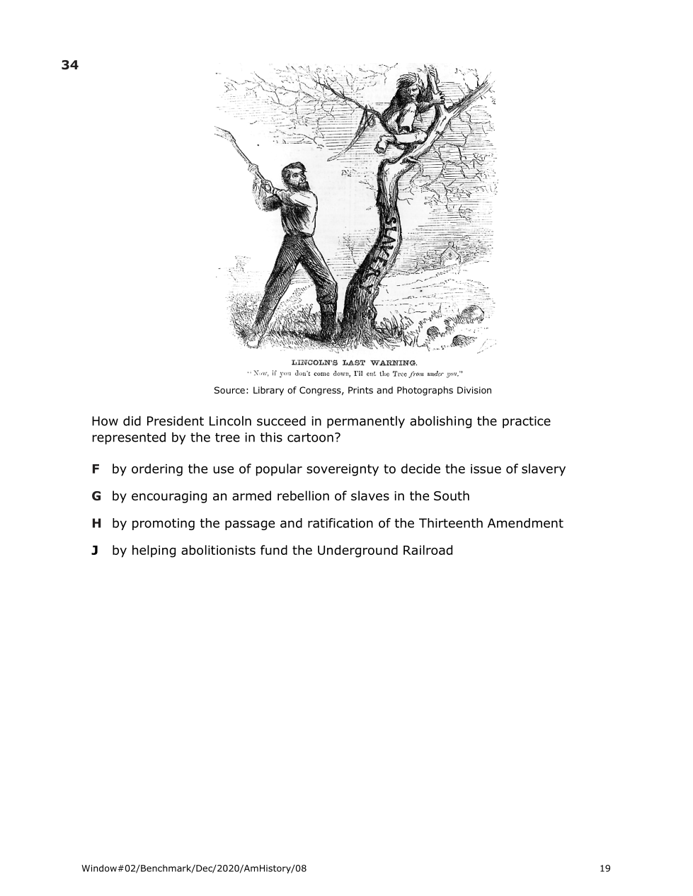 How did President Lincoln succeed in permanently abolishing the practice represented by the tree in this cartoon?