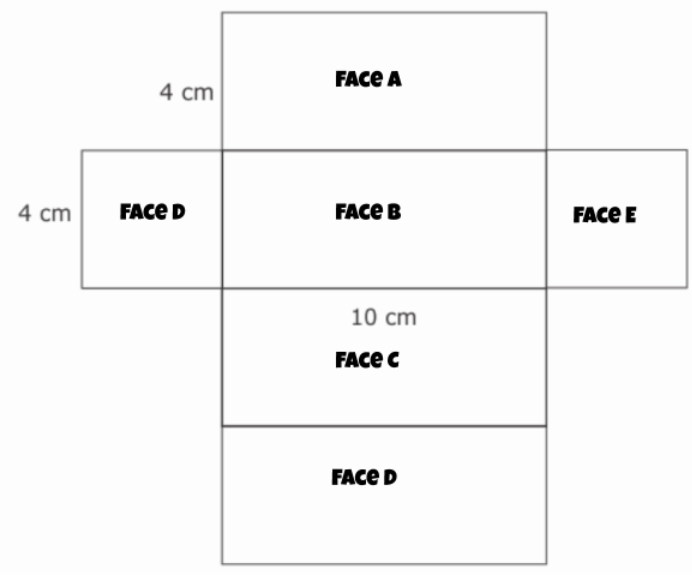What is the AREA of FACE A from the net of the rectangular prism below?