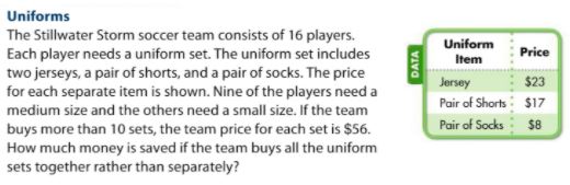3. What is the team price of all 16 uniform sets? (Hint: the team price for each uniform is $56)