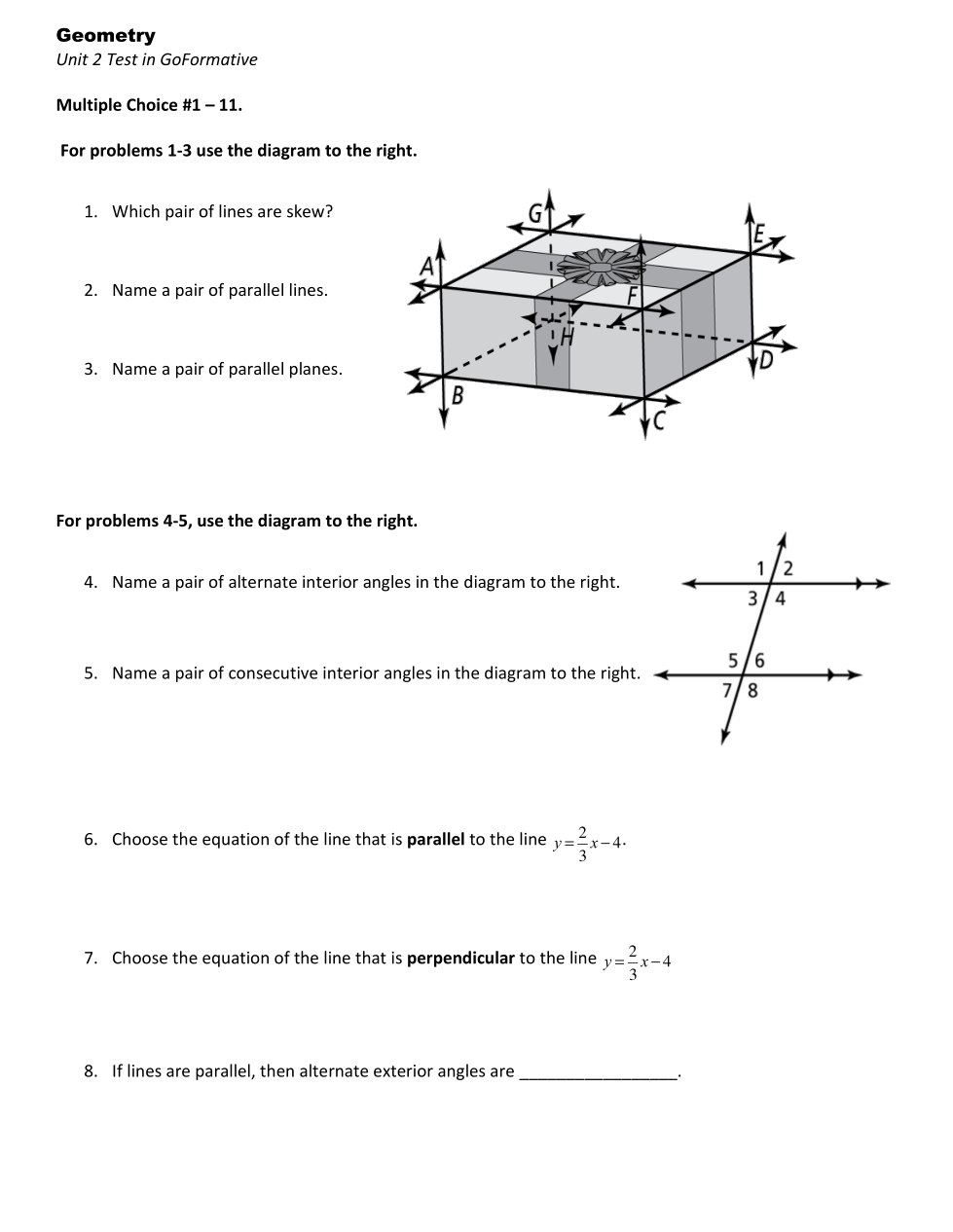 Name a pair of alternate interior angles.