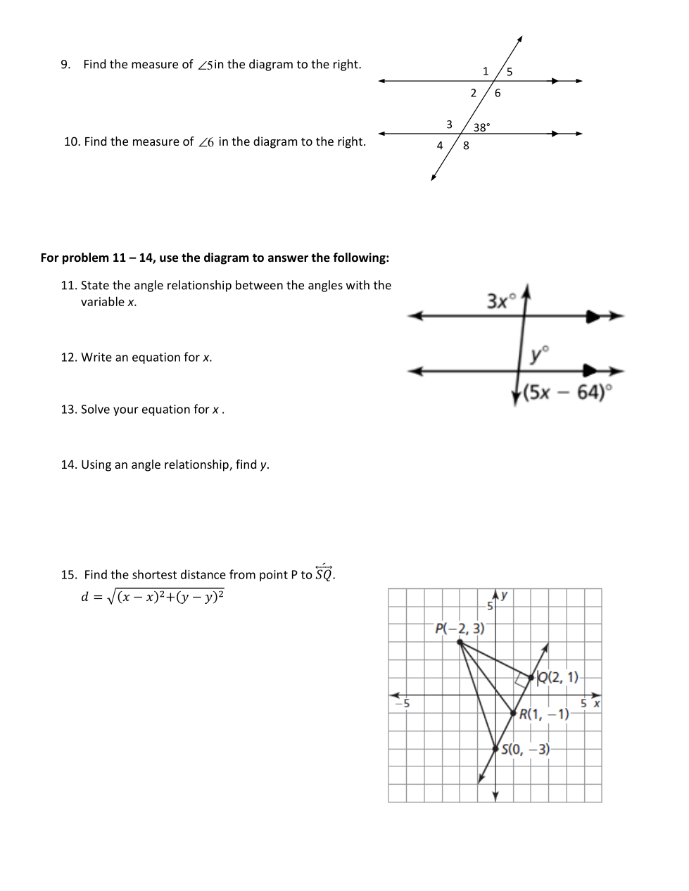 Find the shorest distance from point P to line SQ.