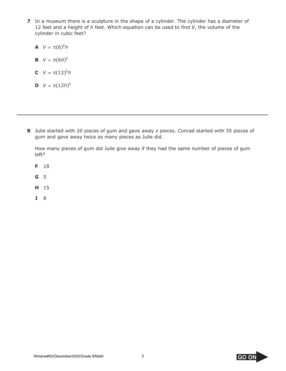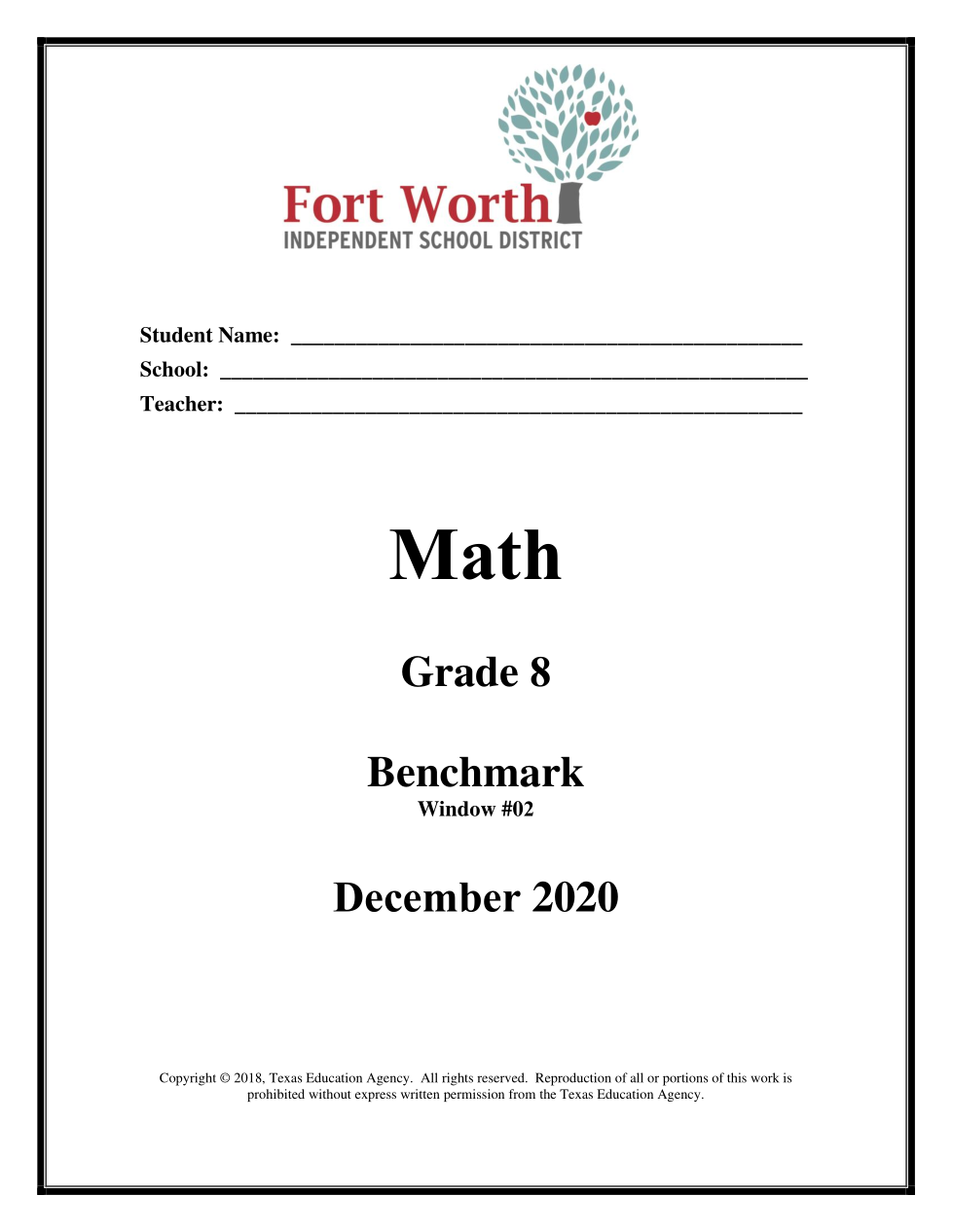 rms.056 Math Grade 8 Benchmark Window #02 December 2020