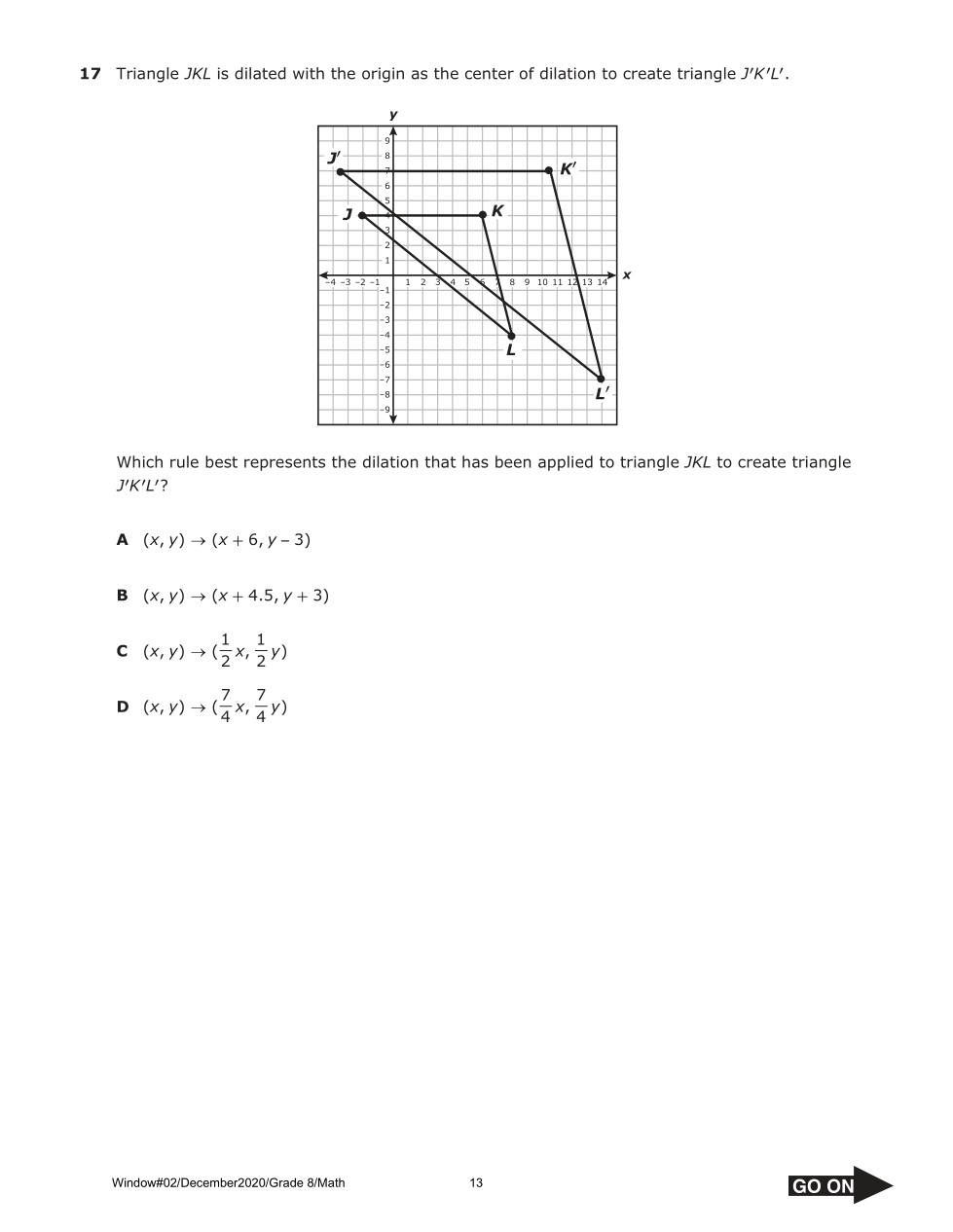 Which rule best represents the dilation that has been applied to triangle JKL to create triangle J K′ ′L′?