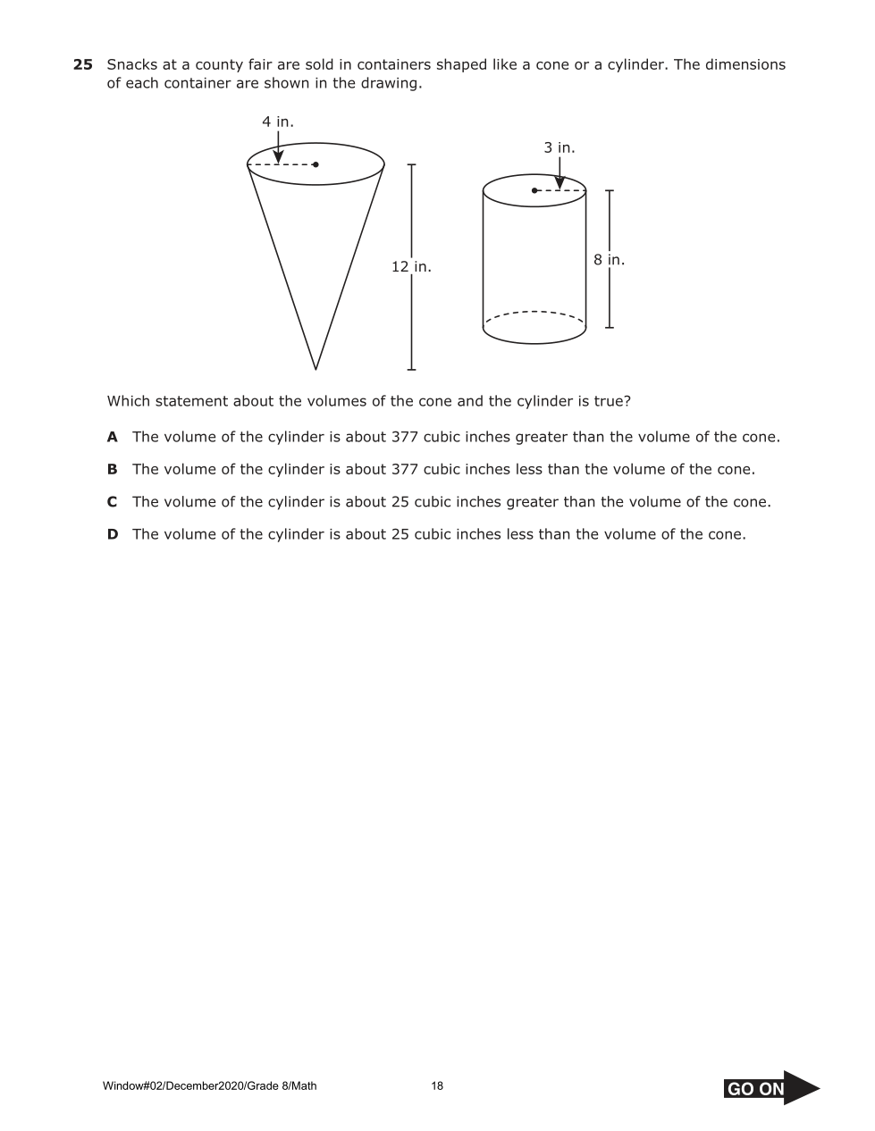 Which statement about the volumes of the cone and the cylinder is true?