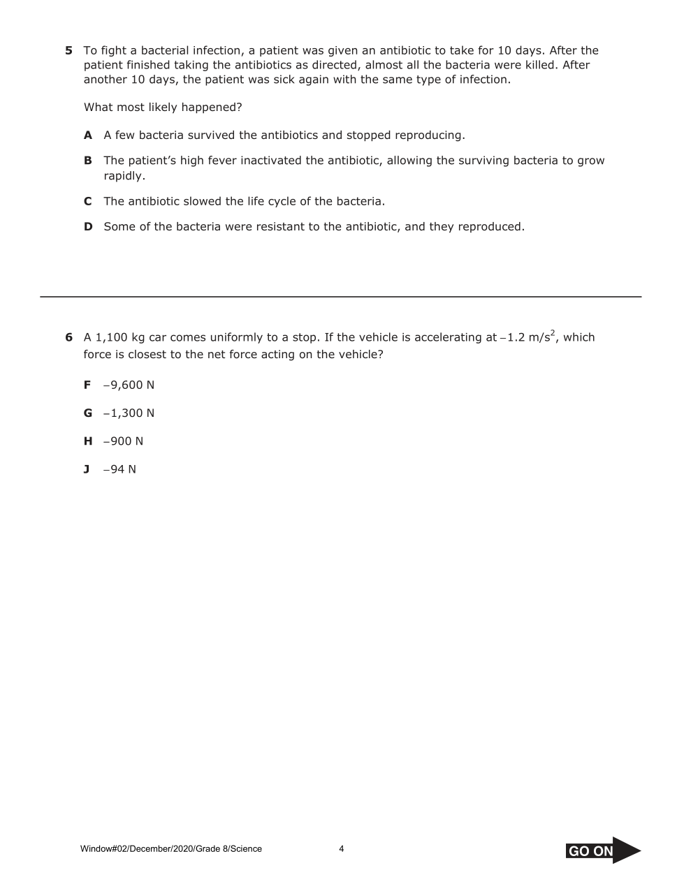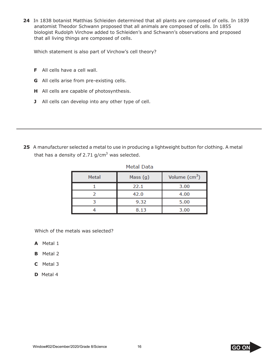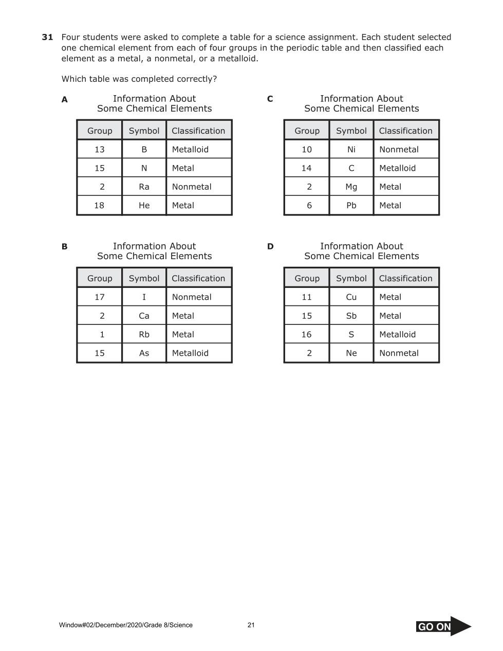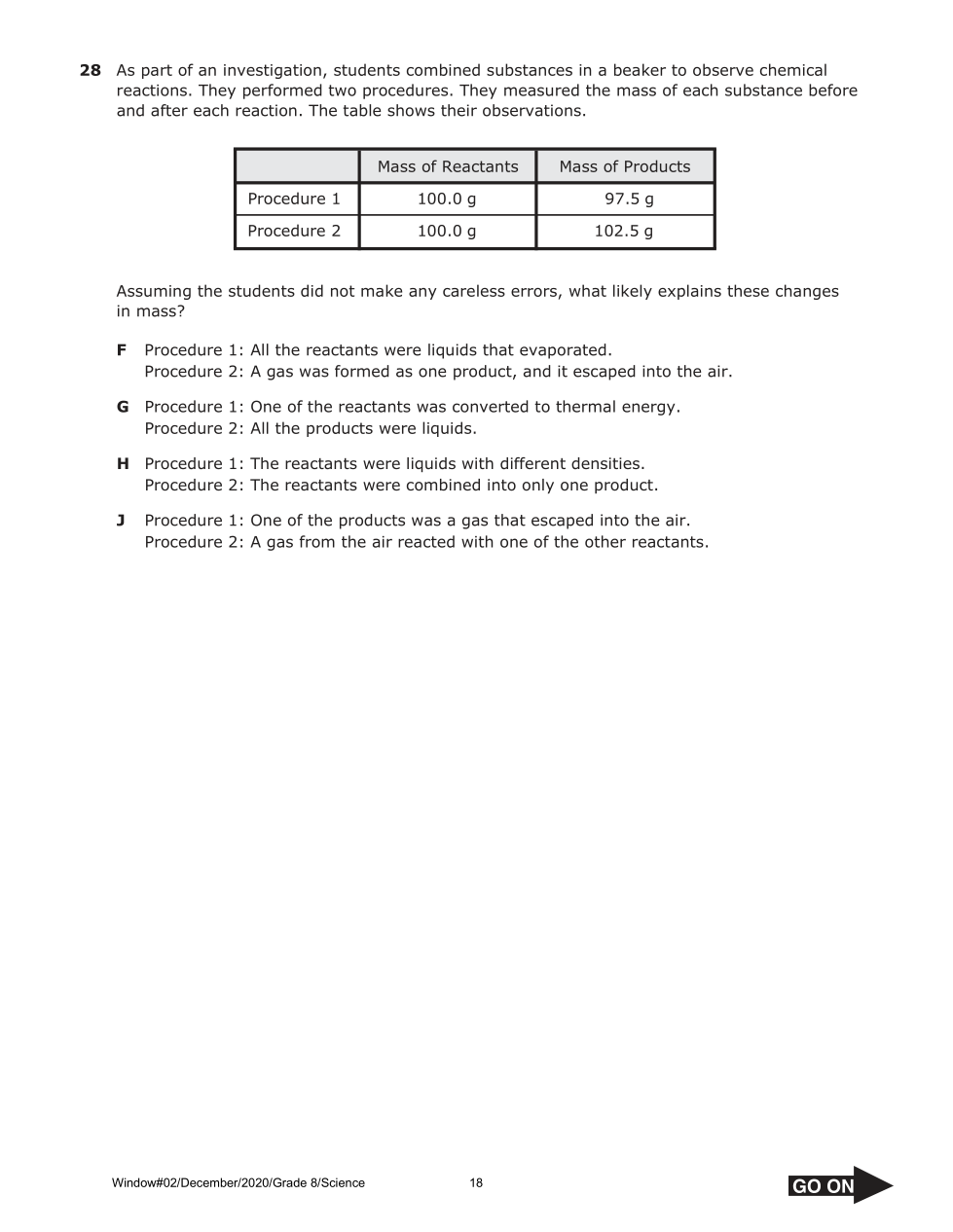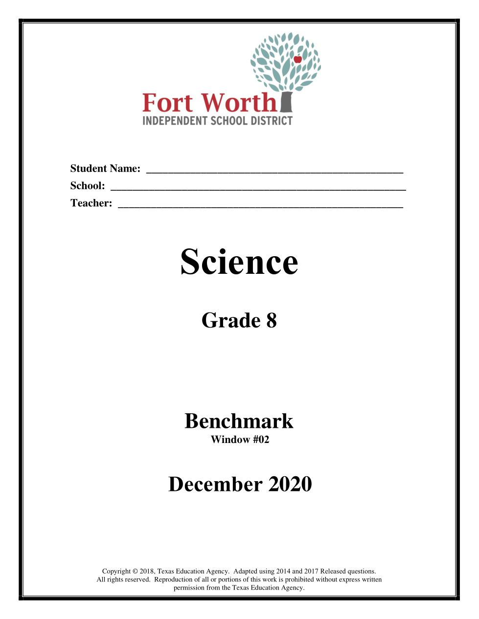 rms.056 Science Grade 8 Benchmark Window #02 December 2020