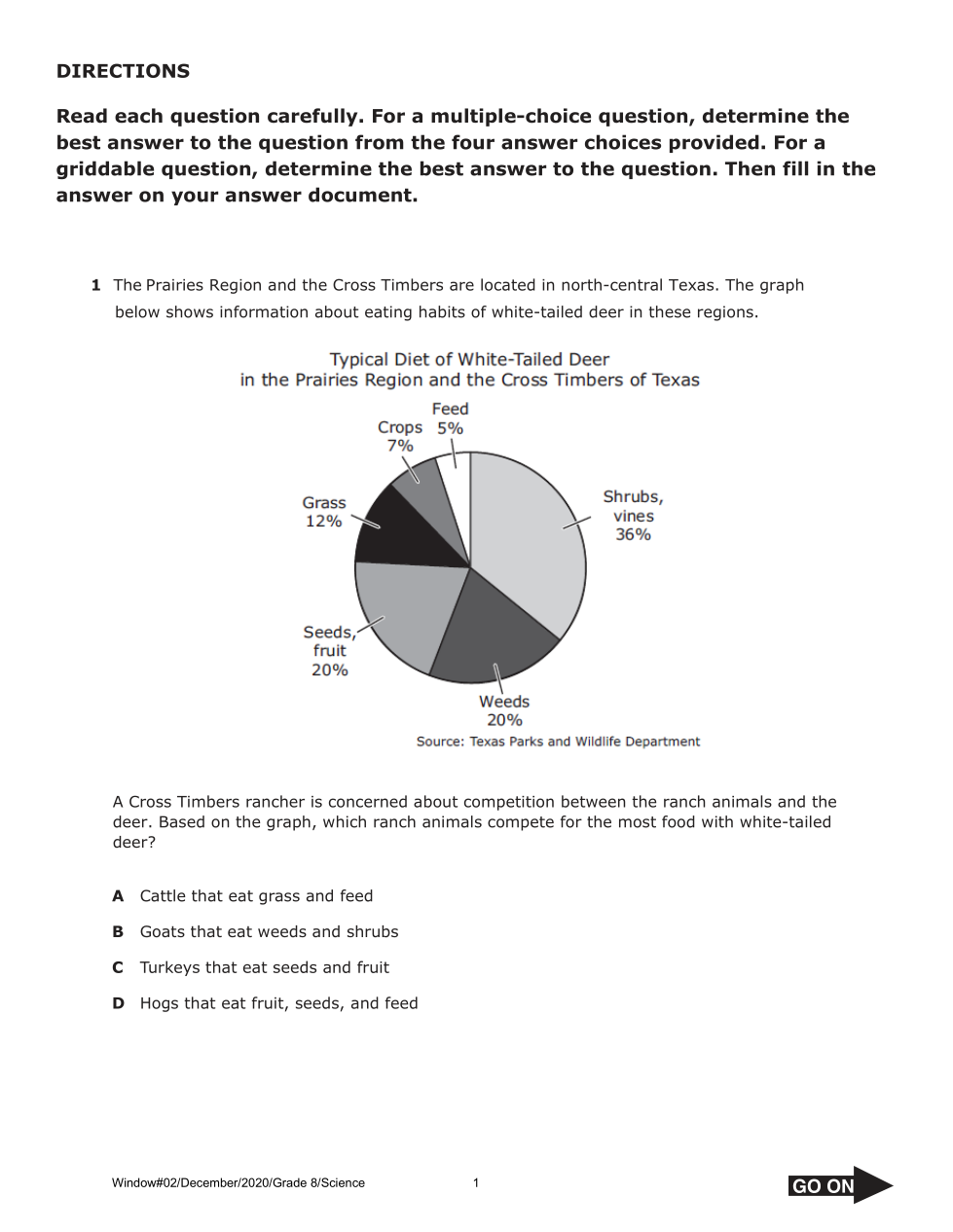 A Cross Timbers rancher is concerned about competition between the ranch animals and the deer. Based on the graph, which ranch animals compete for the most food with white-tailed deer?