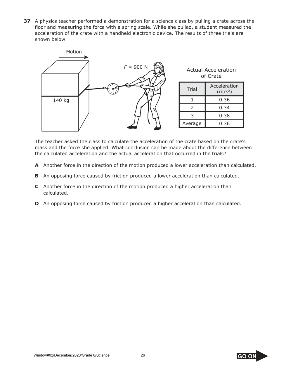 The teacher asked the class to calculate the acceleration of the crate based on the crate’s mass and the force she applied.