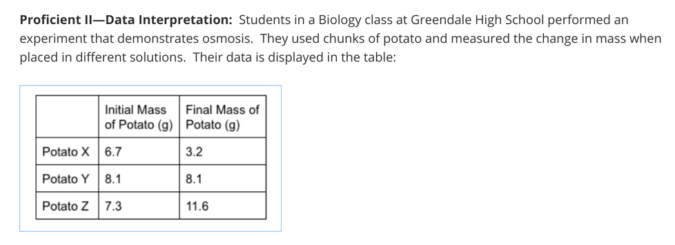 In the circles below, sketch what the potato cell may look like after being placed in each solution.