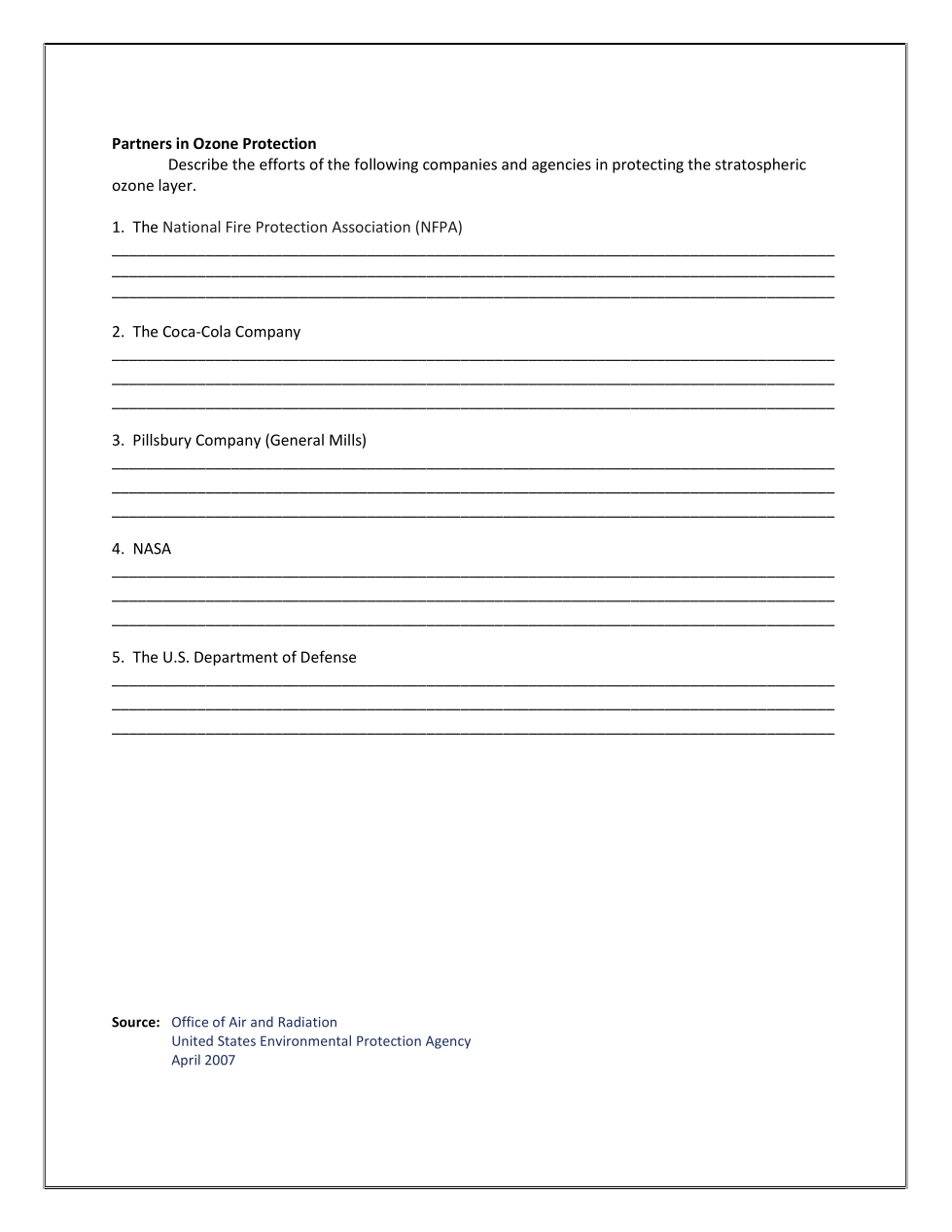 what has the following company or agency done to protect the ozone layer: The US DofD
