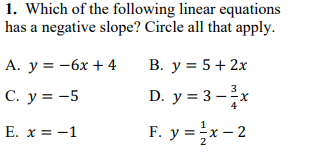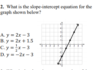 Write the equation in slope intercept form. SHOW ALL WORK (finding slope, intercept, and writing equation)