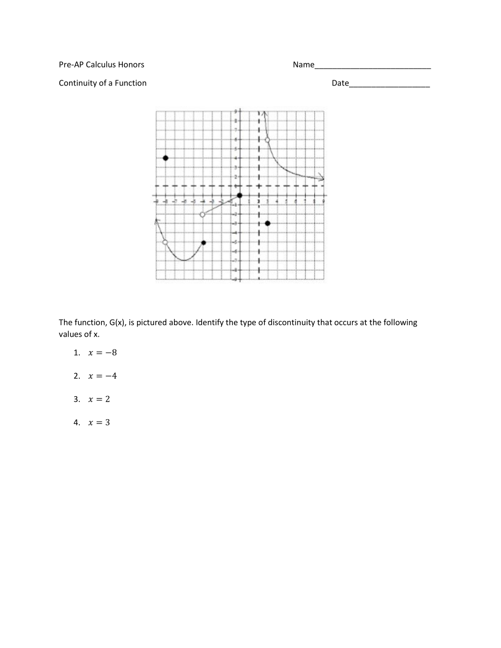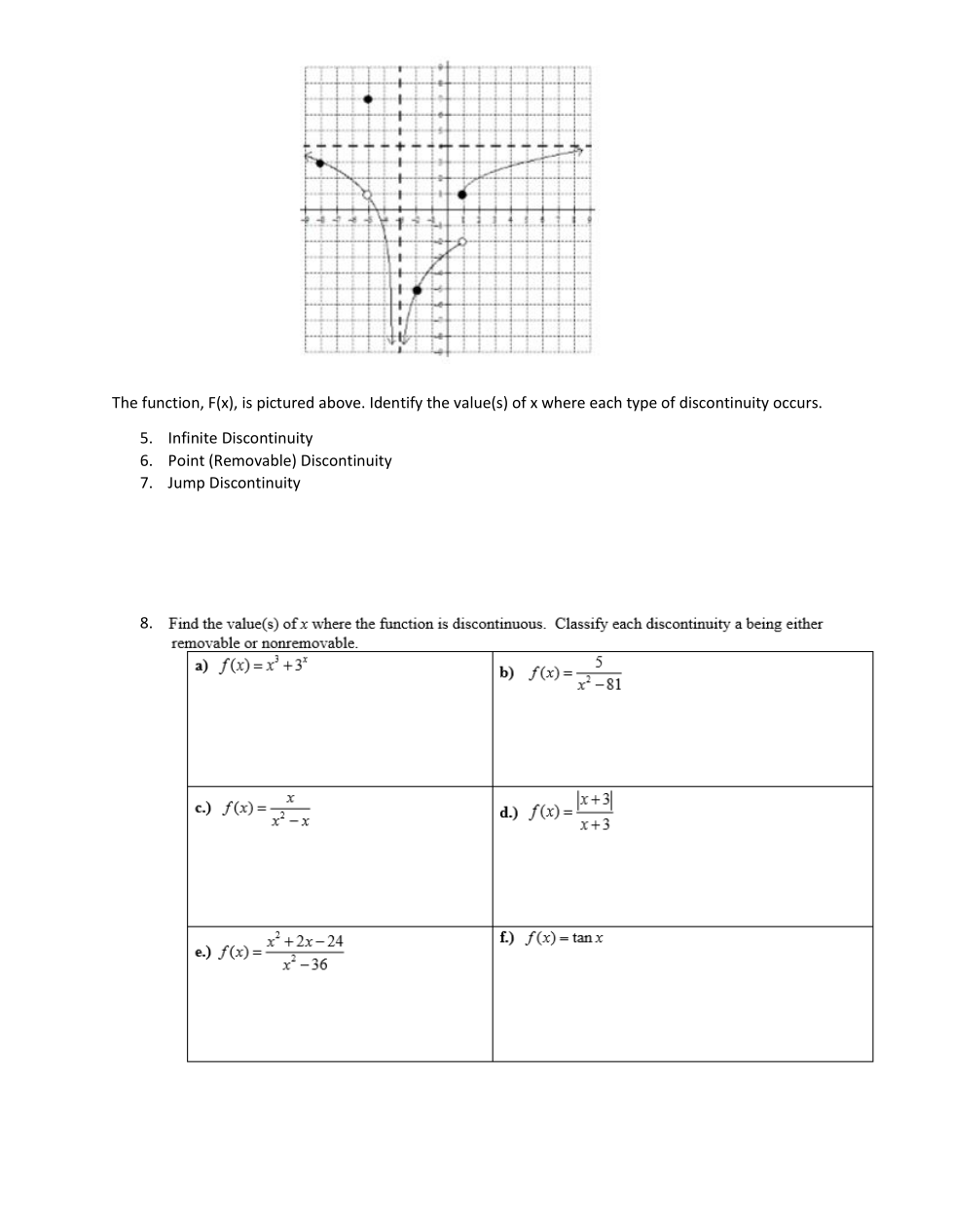 Type your answer like this:-2(R), 2(NR)If there are no discontinuities, type none.