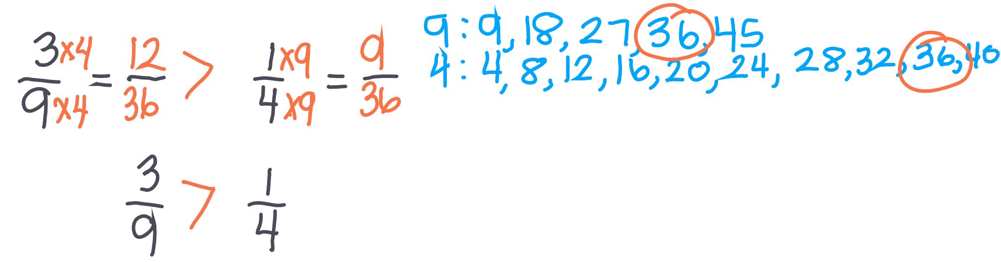 Compare 3/9 and 1/4 using the common denomintor strategy.