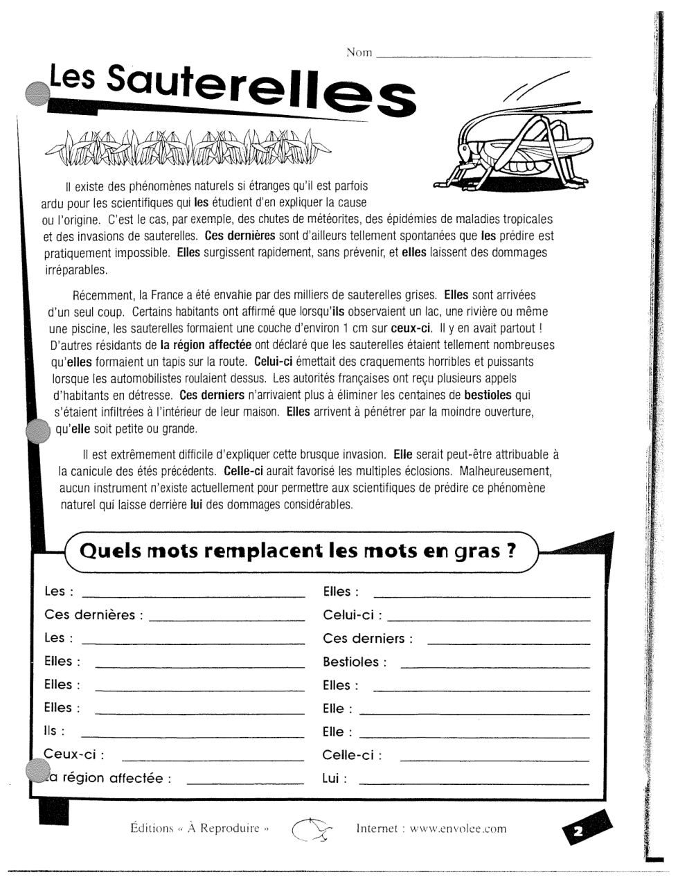 Lorsqu'on lit un texte, il est important d'identifier l'information qui est reprise par un pronom ou encore un mot synonyme si on veut s'assurer de bien comprendre les propos. Voici un exercice qui te permettra d'en prendre conscience et de développer cette aptitude.