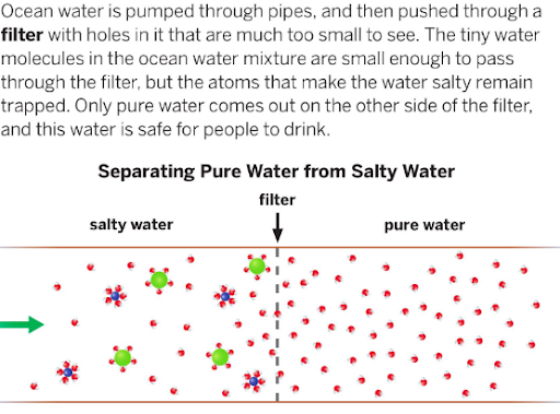 What properties of substances or properties of molecules did scientists use to separate the salt water mixture?Sentence starter: Scientists used ____________________ property to separate the salt water mixture.