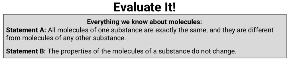 Does the model fit with Statement B: The properties of the molecules of a substance do not change.