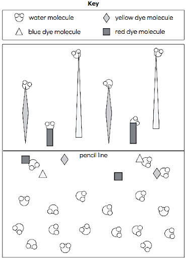 Does the model explain how the colors moved up the paper?