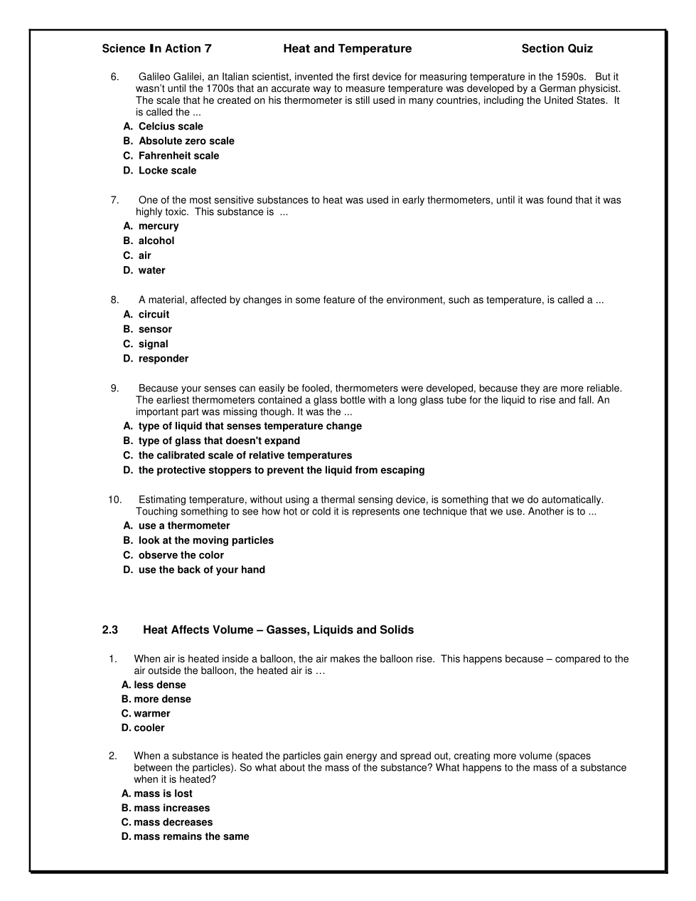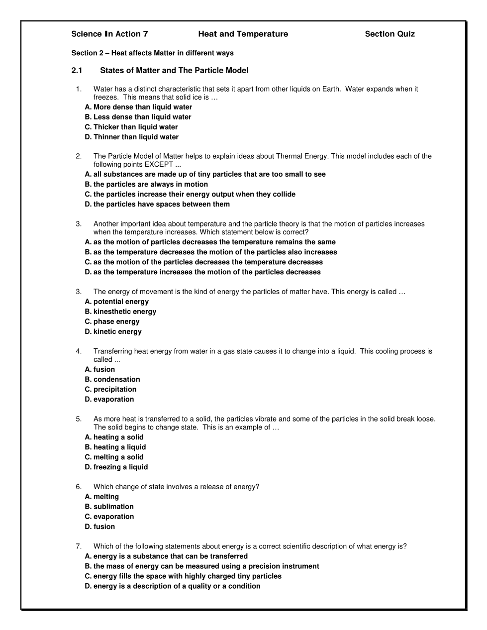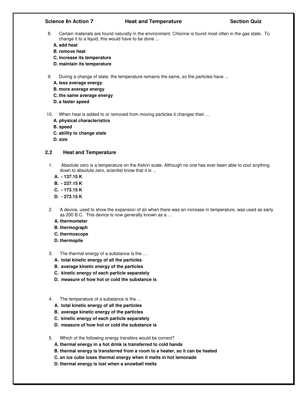 Gr. 7 - Heat 7 Temp. Section 2.0 Quiz