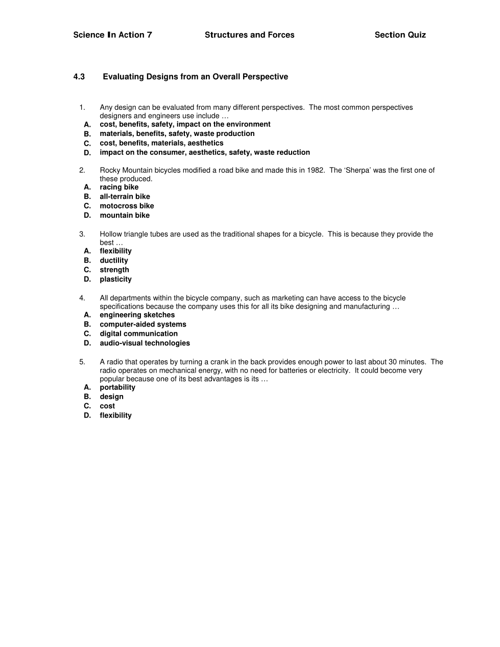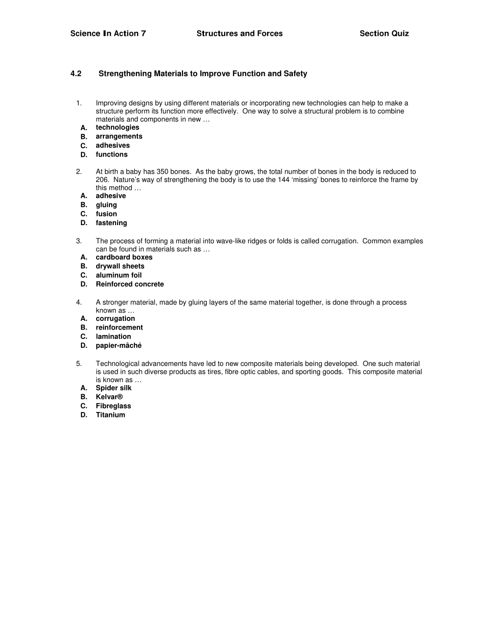 Gr. 7 Structures & Forces- Section 4.0 Quiz