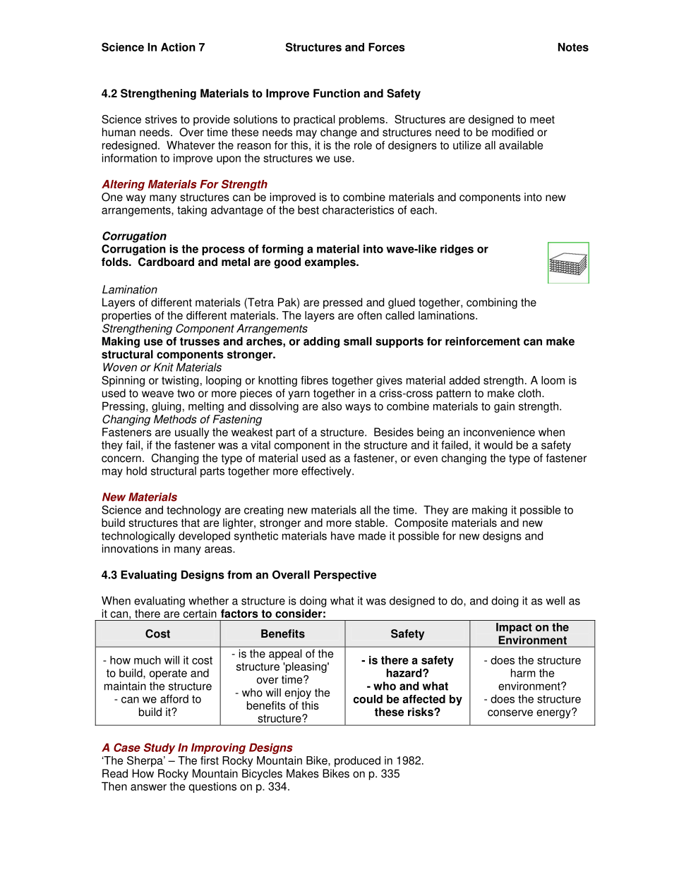 Improving designs by using different materials or incorporating new technologies can help to make astructure perform its function more effectively. One way to solve a structural problem is to combinematerials and components in new ...