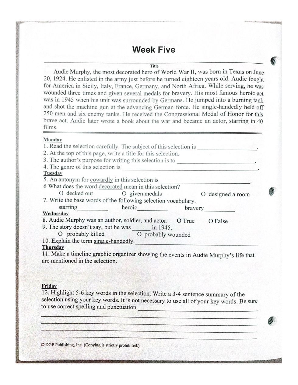 List 4 events that occurred in the life of Audie Murphy. Make sure you are listing them in the order that they happened.