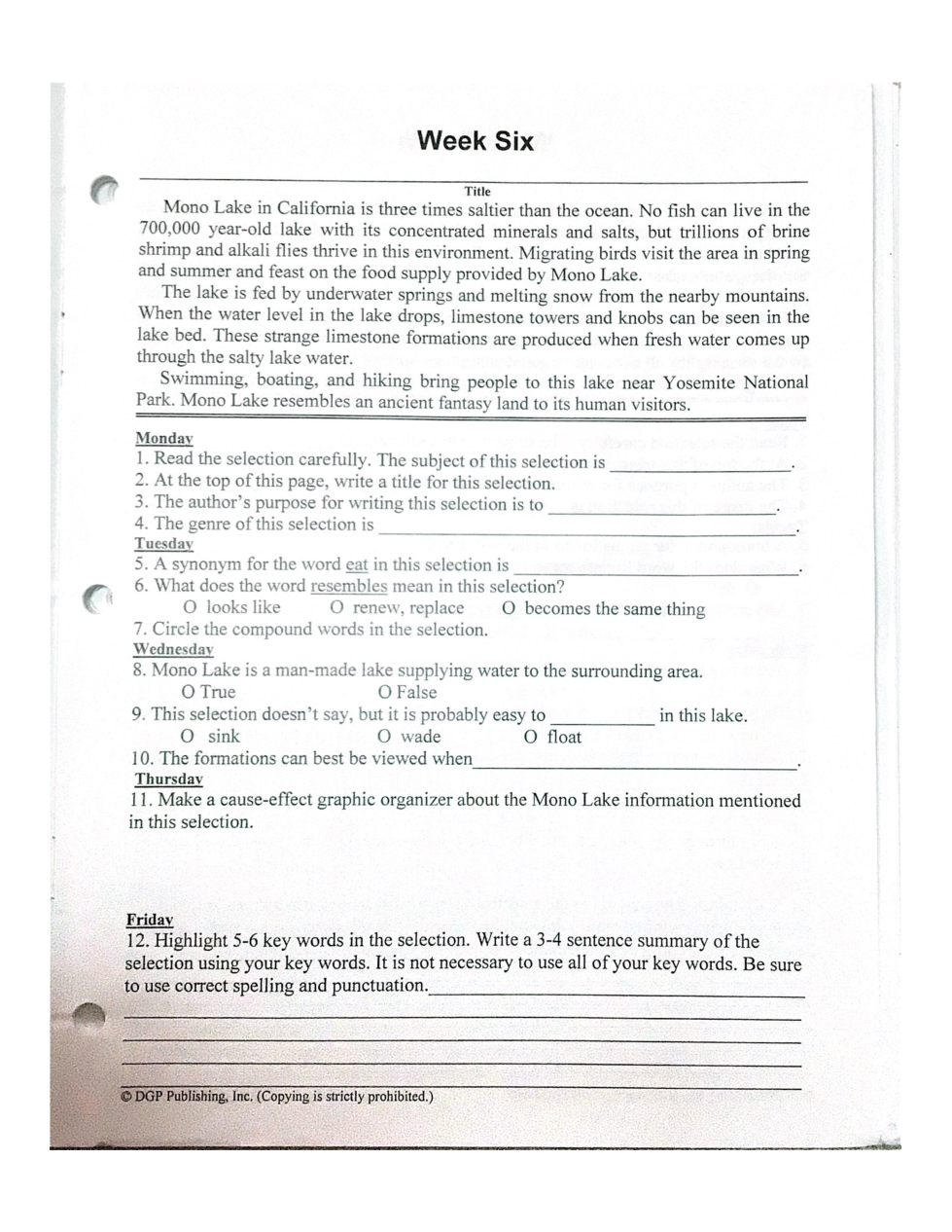 List 5 or 6 key words or phrases that will help you write your summary. Make sure to separate your words with a comma.