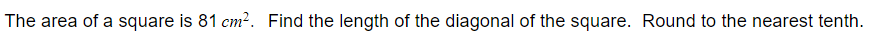 A rectangle is 7 ft by 12 ft. Find the length of its diagonal. Round to the nearest tenth. Draw a figure to help.