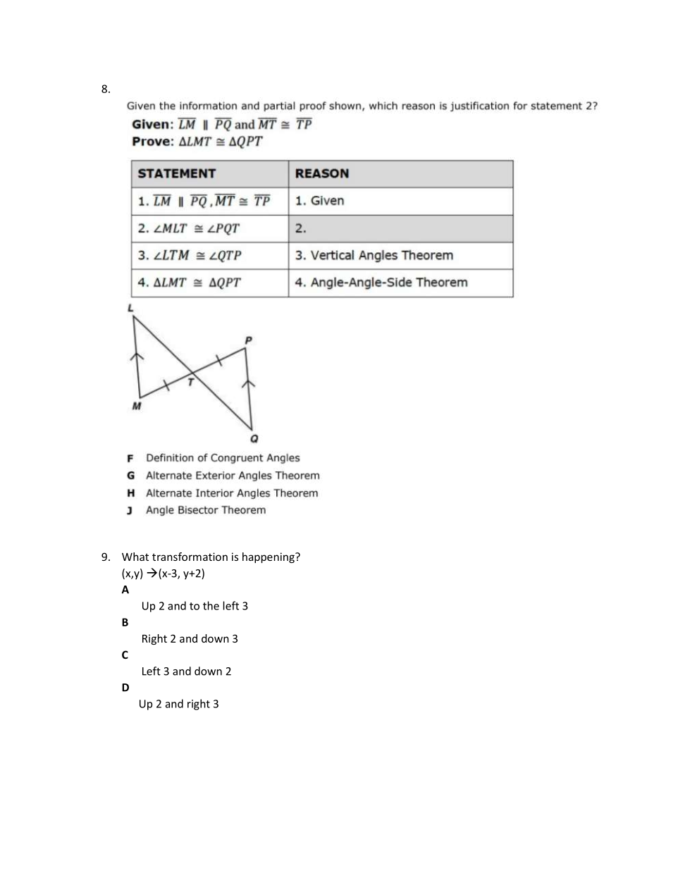 Semester 1 Geometry Exam