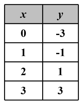 Which equation represents the relationship shown in the table below?