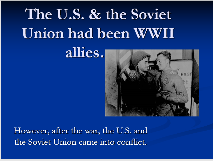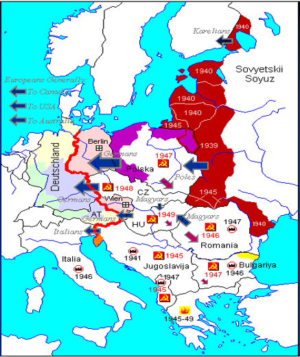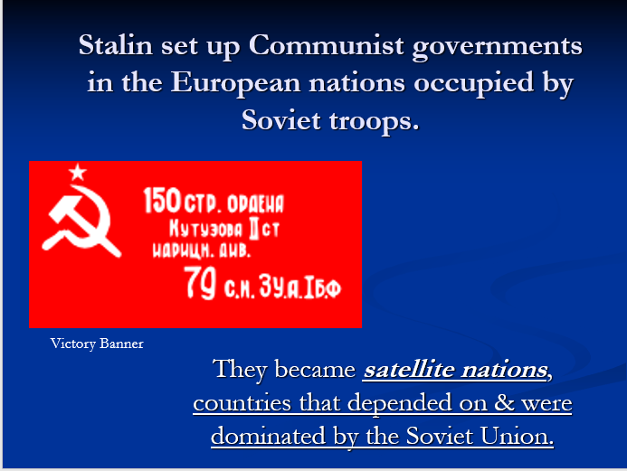 The soviet army occupied Eastern Europe at the end of WWII and set up what was known as "The Communist Countries of the Soviet Union."
