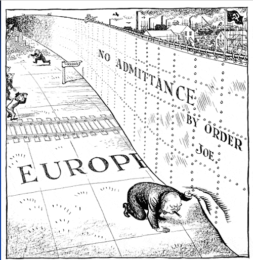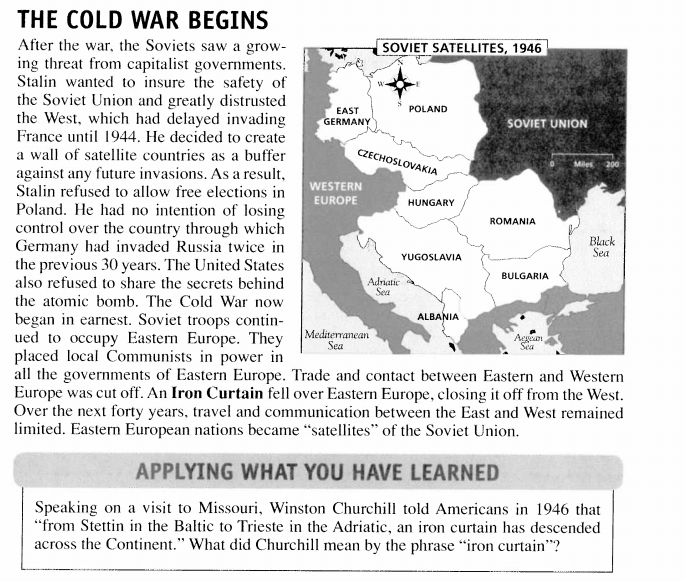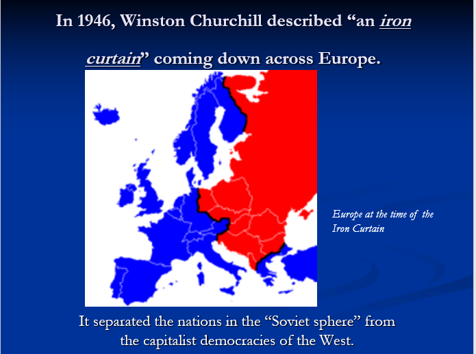 Winston Chruchill acually coined the phrase "Iron Curtian" which desribes the division of Europe in 1946.