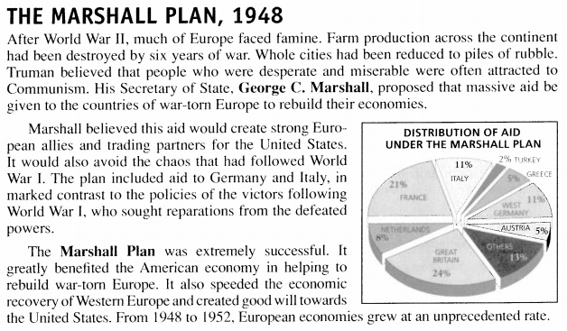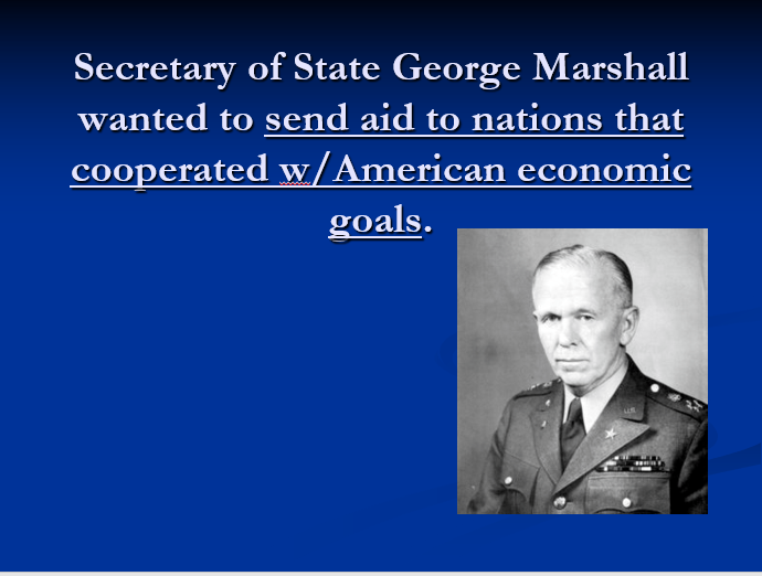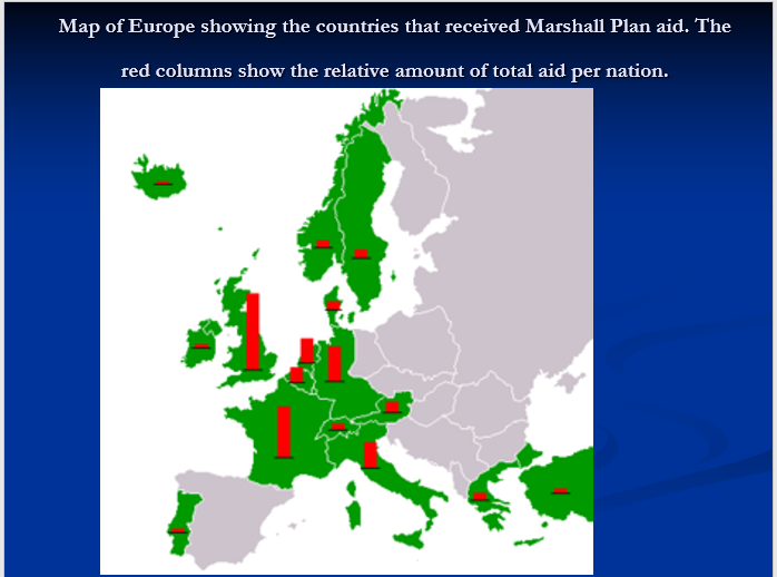 The Marshall Plan was proposed a massive aid to be given to the countries of war-torn Europe to rebuild their economies.