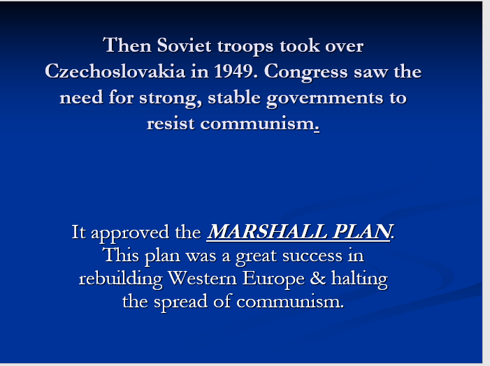 The Marshall Plan was sucessful and between 1948 and 1952 European economies grew at an unpresadented rate.