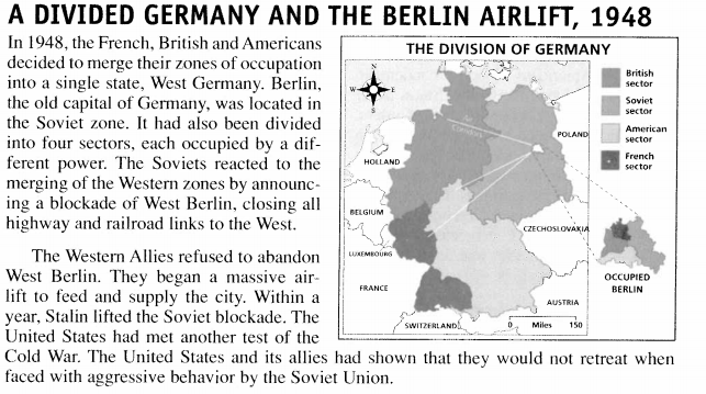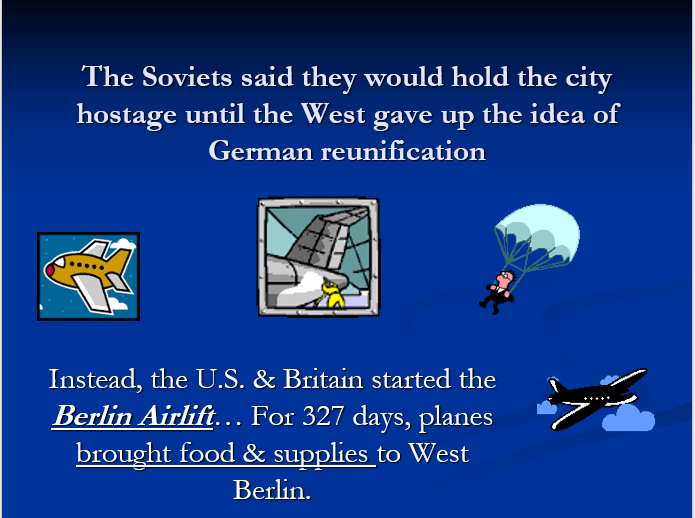 The Berlin Airlift ended within a year, Stalin lifted the blockade and the United States with allies had shown that they would not retreat when faced with aggression by the Soviet Union.