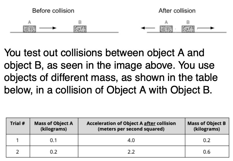 Objective: SWBAT identify the relationship between the force and acceleration in a collision by applying F=MA in a collision to predict the acceleration and mass of a second object