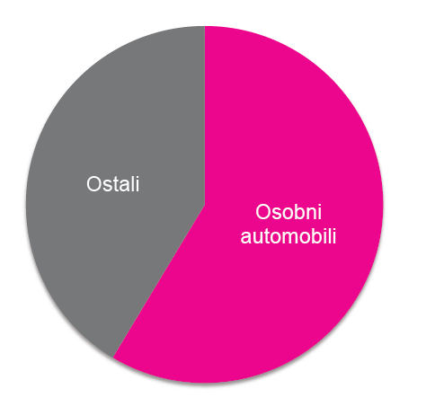 Kružnim je dijagramom prikazan udio osobnih automobila u ukupnome broju vozila koja su prošla križanjem tijekom jednoga dana. Križanjem je prošlo 150 osobnih automobila, što je prikazano kružnim isječkom sa središnjim kutom od 200°. Koliko je ukupno vozila toga dana prošlo križanjem?