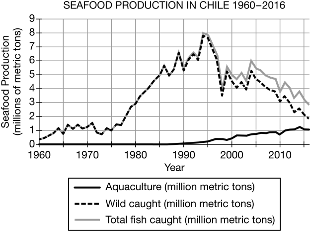 Based on the graph, describe the trend in production from aquaculture in Chile between 1995 and 2010.
