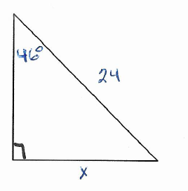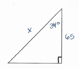 Using the image above, fine the measure of side BC. This side has been labeled x.
