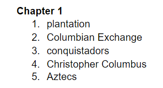 There are no right or wrong answers here, but you need to do the work of reviewing Chapter 1 and selecting the most important key terms to study.