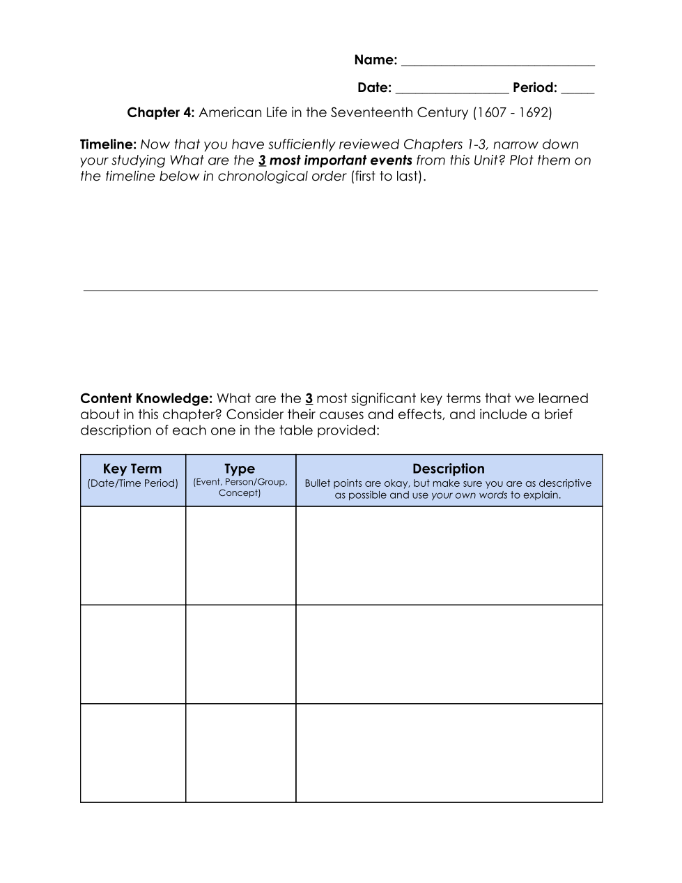 What are the top 3 key terms that you think will be on the Unit 1 Exam? Be prepared to connect to these topics when you write your analysis!