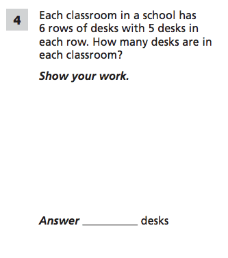 Each classroom in a school has 6 rows of desks with 5 desks in each row. How many desks are in each classroom? Show your work.